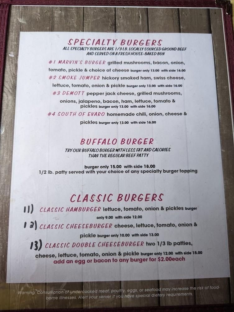 Welcome to Marvin's Tavern, your go-to spot for a delightful dining experience in Missoula, MT. Located at 7995 La Flesch Lane, our grill-centric café offers a cozy atmosphere perfect for lunch or dinner, whether you're dining solo or with friends. Enjoy our outstanding selection of local specialties, expertly crafted cocktails, and a wide array of beers. With amenities like a charming terrace, drive-thru service, and efficient takeout options, we cater to every need. Unwind with games, sports, and our happy hour specials, all in a relaxed and historic setting. Join us for a taste of quality dining at Marvin's Tavern!